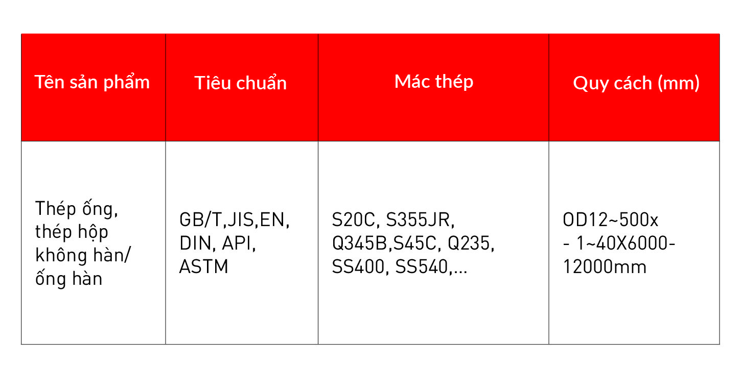 Tiêu chuẩn: ASTM A53, A106, API 5L…