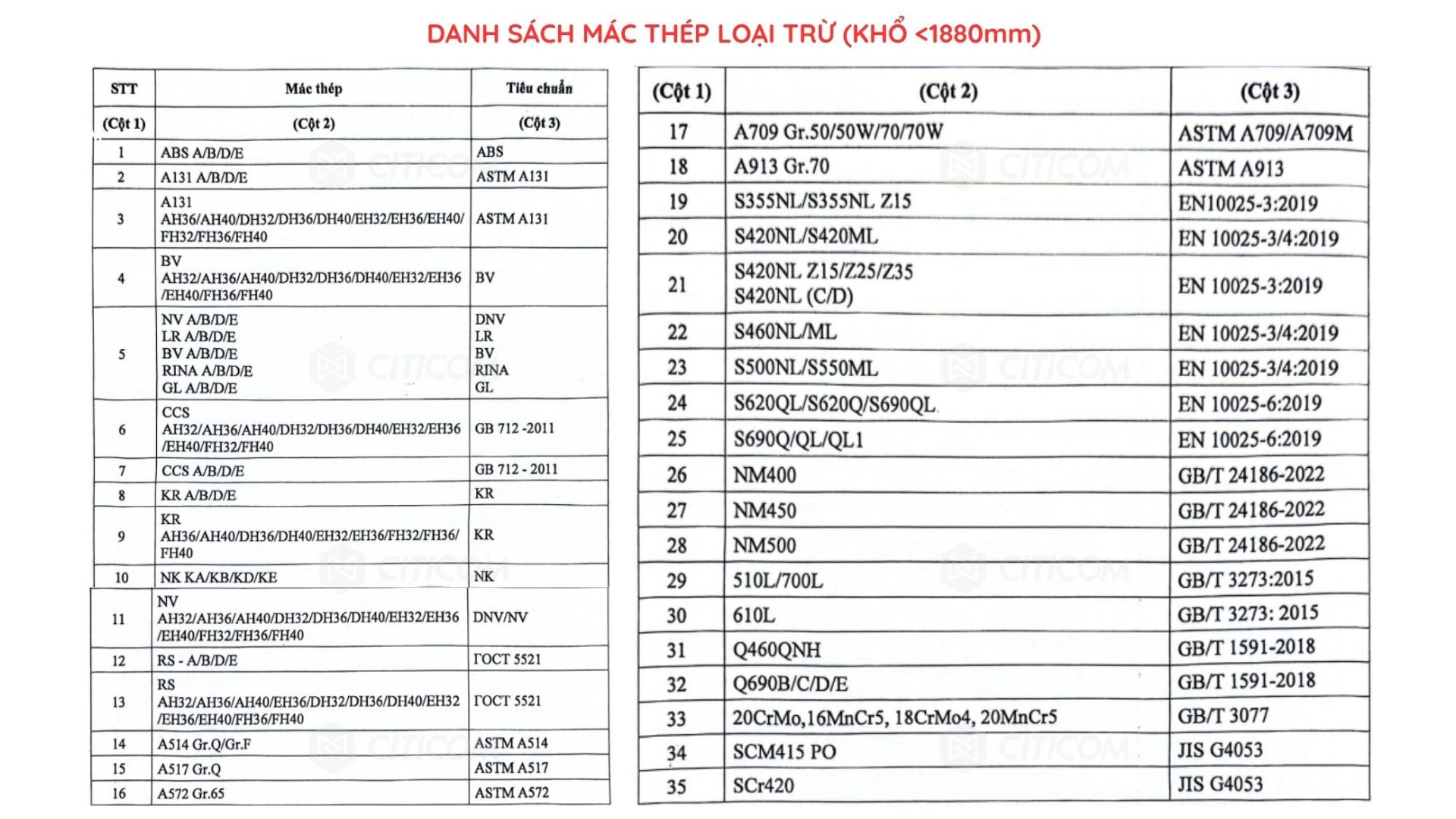 Danh sách 35 mác thép loại trừ trong Quyết định số 1959/QĐ-BCT ngày 4/7/2025