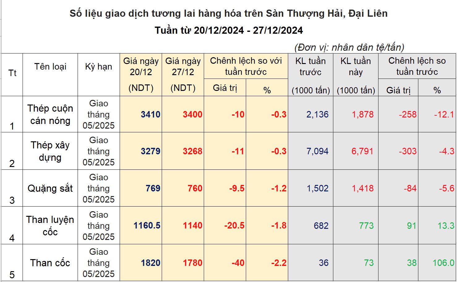 Nhu cầu hạ nguồn chậm, thiếu vắng thông tin tích cực… thị trường hàng hóa tuần qua giao dịch trong trạng thái trầm lắng, thanh khoản thép và quặng sắt ở mức thấp và tiếp tục suy giảm so với tuần trước. Kết thúc tuần, giá thép giảm nhẹ 0.3% , quặng sắt giảm 1%.