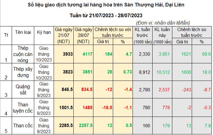Giao dịch sắt thép và nguyên liệu tuần từ 21/07/2023 – 28/07/2023: Giá hàng hóa tiếp tục phân hóa, Thép tăng, quặng sắt giảm