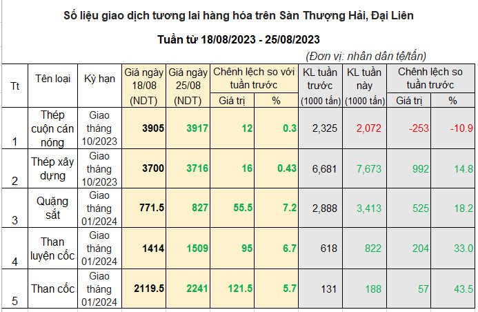 Khối lượng giao dịch tuần này có sự cải thiện so với tuần trước, khối lượng giao dịch thép tăng trung bình 12% , quặng sắt tăng 18% và than tăng trung bình 35%