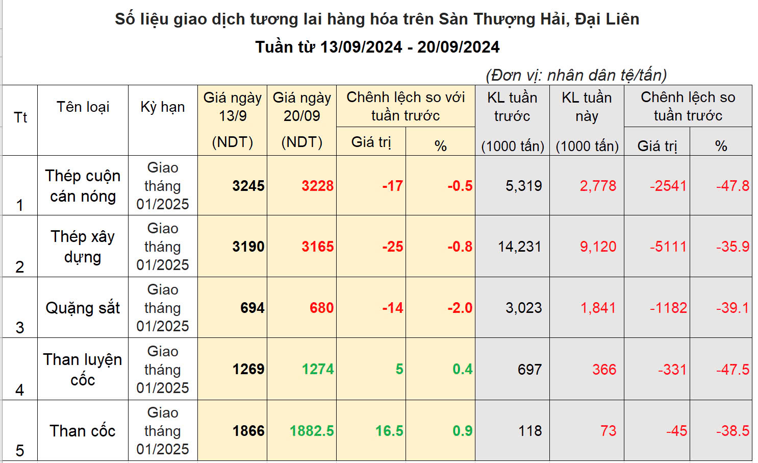 Chốt tuần, giá thép giảm 0.5%, quặng sắt giảm 2%. Khối lượng giao dịch sụt giảm do tuần này chỉ có 3 phiên giao dịch do Trung Quốc nghỉ tết Trung Thu.