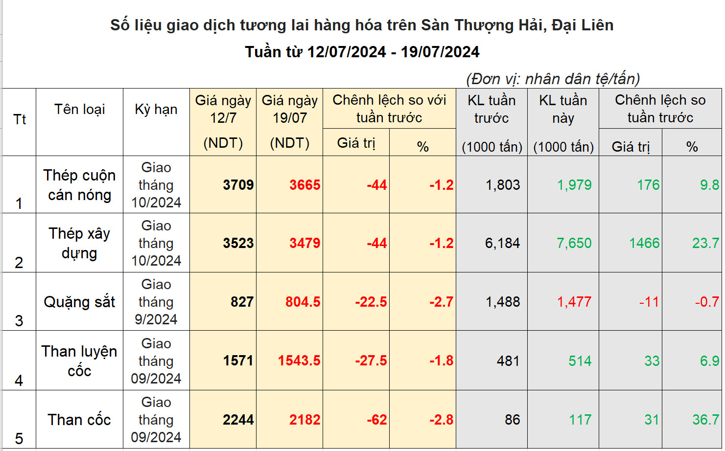Giao dịch sắt thép và nguyên liệu tuần từ 12/07/2024 – 19/07/2024: Trung Quốc không có biện pháp kích cầu mới sau hội nghị TW3, giá thép quay đầu giảm