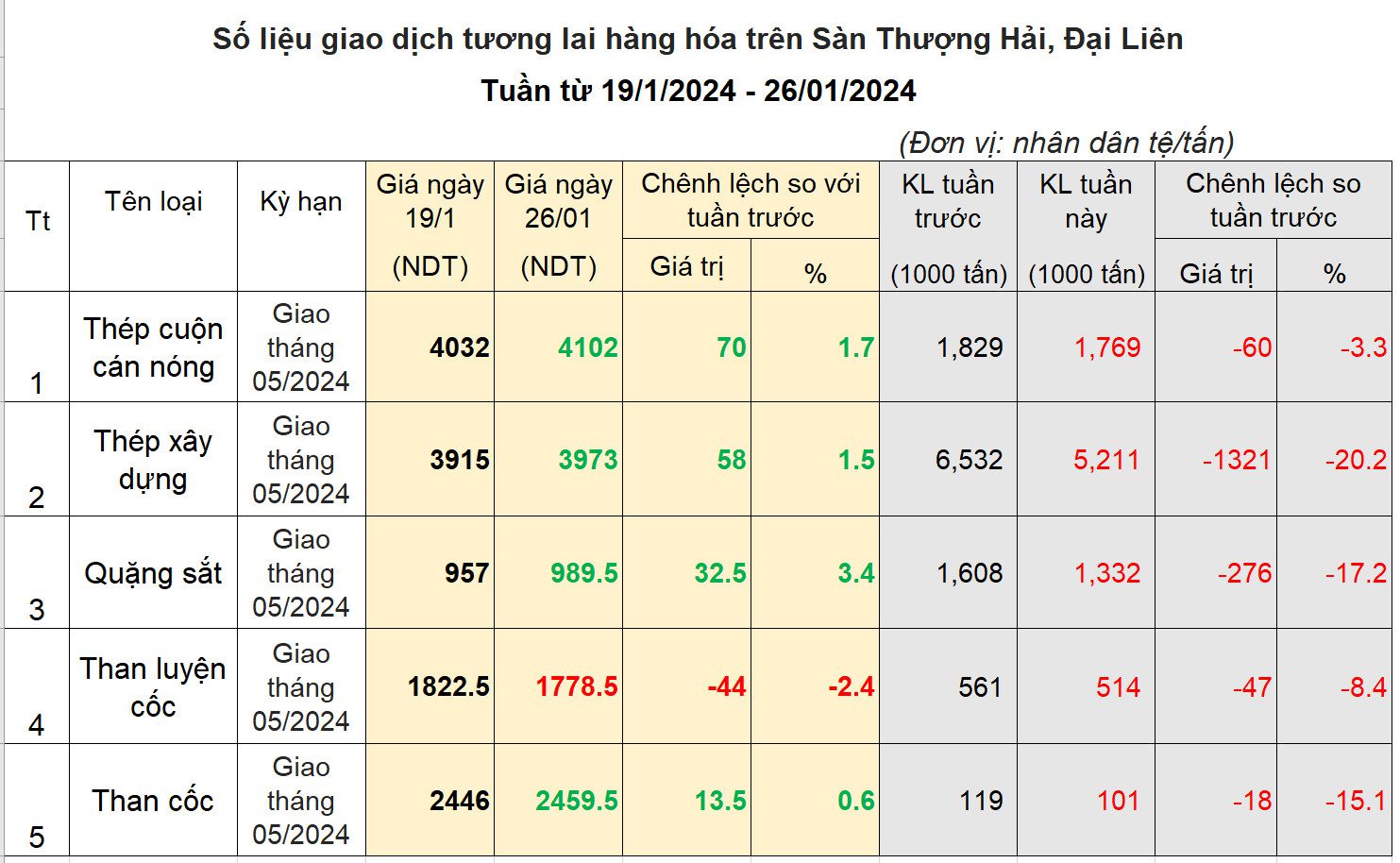 Giao dịch sắt thép và nguyên liệu tuần từ 19/01/2024 – 26/01/2024: Tăng trong nghi ngờ