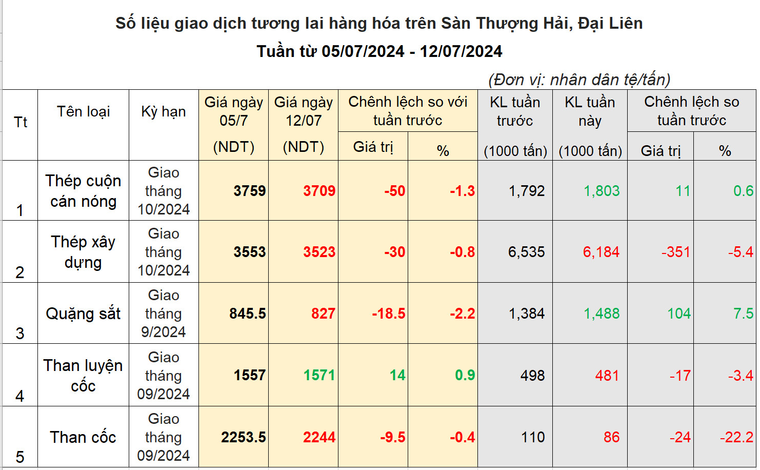 Giao dịch sắt thép và nguyên liệu tuần từ 05/07/2024 – 12/07/2024: Giá thép quay đầu giảm, tiền bị hút vào trái phiếu?