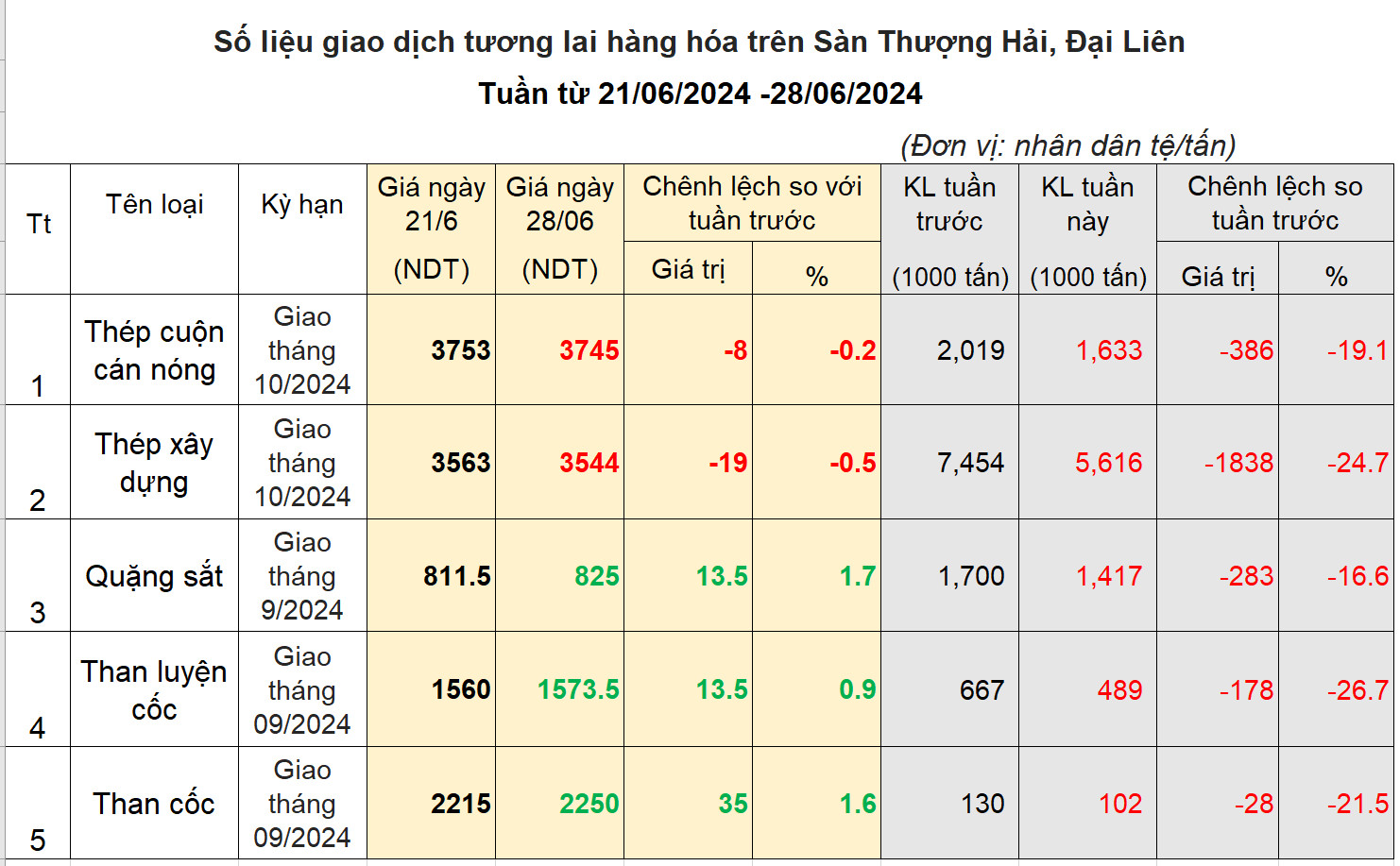 Giao dịch sắt thép và nguyên liệu tuần từ 21/06/2024 – 28/06/2024: Quặng sắt và than cốc tăng mạnh trở lại
